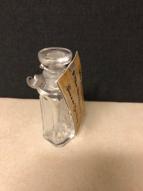 The family gave the shavings to Patric, who gave them to the Kickstarter donors personally. I’m incredibly honored to have a silver sharing, which Patric presented in a small glass container. (Pictured above.)